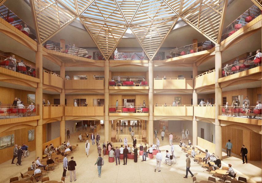 With its double-height proportions, the Recital Hall is an impactful multi-purpose space designed for creative exchange. As well as academic sessions, the warm acoustics make it perfect for music-centred activities, including movement and dance, which are supported by a mirror and barre.
